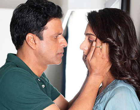 Manoj Bajpayee’s Sushant Dubey is about to leave for an office assignment to Mauritius. The camera zooms in on Sushant banging on the door and trying to convince his wife that he wouldn’t stray. He is like a horny teenager and she’s bent on coming along with him on the tour. We also hear a child giggle in the background. Next, Sushant is shown checking into a resort with Aparna (Tabu), who has a kid in her arms. He signs the register as Mr and Mrs Dubey, but a distance is palpable and you sense something is amiss. Chaos unleashes once Titli, their ‘daughter’, goes missing the next morning. So did the two-and-a-half audience! I wish I could too.