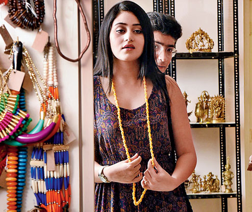 Ridhima is not “a jewellery person”. “This neckpiece is not typical jewellery. It is made of fabric. See, she already loves it!” said Gaurav as Ridhima tried on the yellow necklace (Rs 450).