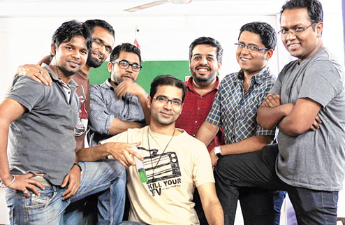 | (L-R) Satish Ranjan, Deepak Mishra, Anandeshwar Dwivedi, Arunabh Kumar, Amit Golani, Prashant Raj and Biswapati Sarkar make up The Viral Fever |