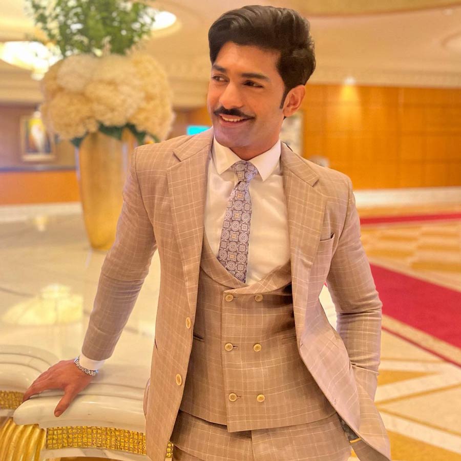 At an event in Dubai, Taha channeled a retro vibe in a fitted three-piece pastel suit and tie with neat side-parted hair.