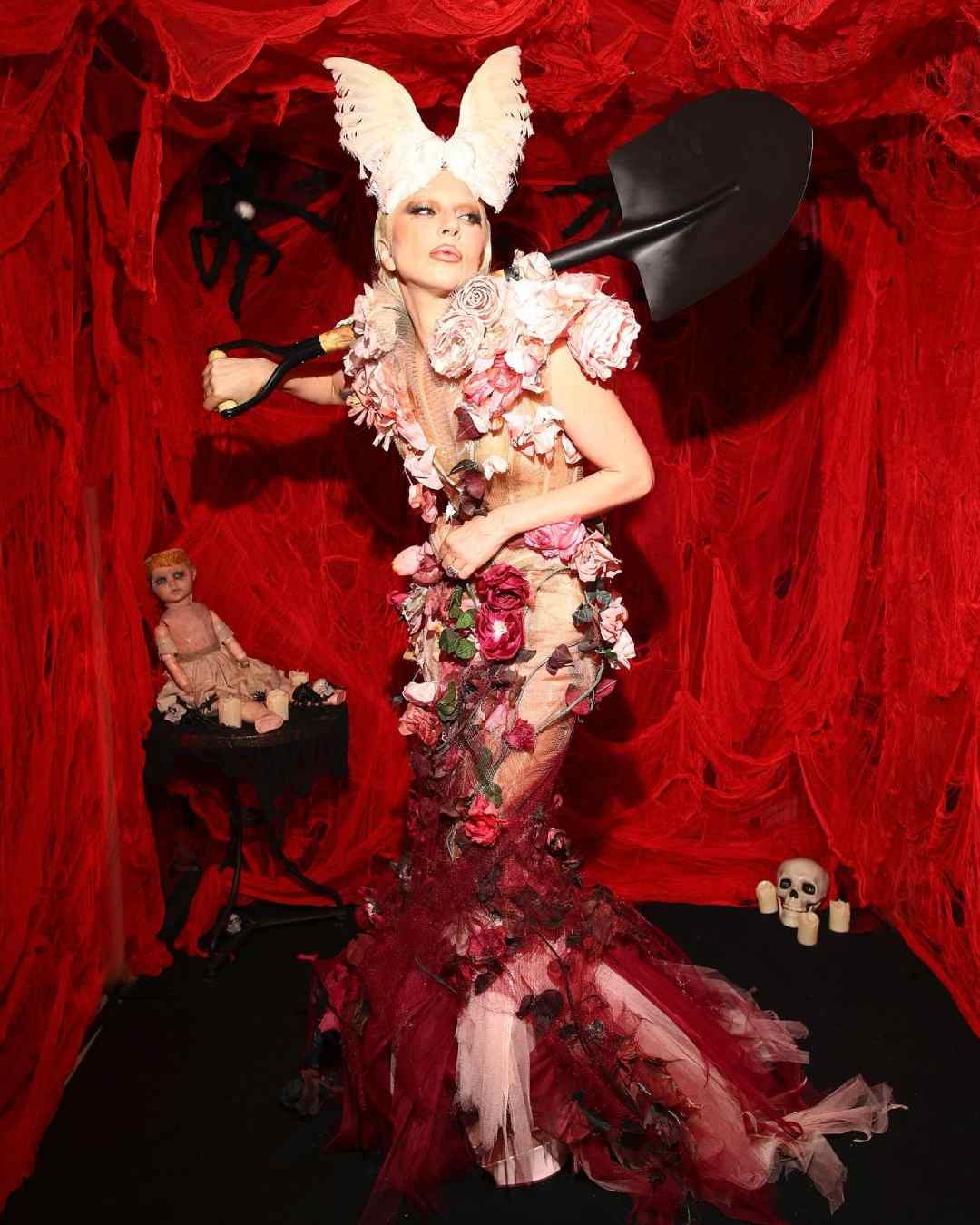 American singer-actress Lady Gaga chose the Garden of Eden and its gardener as her theme this year. The costume featured a floral-adorned gown, a white feathered headdress. Gaga is holding a shovel in the photo.