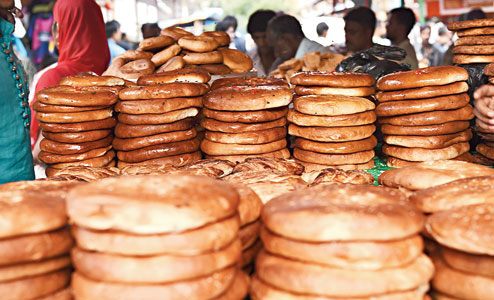 Swiftly driving through the Park Circus flyover at dusk, we reached Arsalan at the five-point crossing just before Iftar broke. The shutters were downed and no new customers were given tables during this time as the staff and patrons sat down to break the fast. We were invited to join them. A spread of cut fruits, dates, crispy fried pakoras and mutton samosas were laid out with bowls of their famous Chicken and Mutton Haleem. Made with eight different types of dal and dalia soaked overnight and simmered for over eight hours with juicy meat and more than 28 different spices, the Arsalan haleem is preferred far and wide with queues extending till the end of the pavement, said Mohammed Tawfique, chief food supervisor at the 14-year-old establishment that now has more than eight branches. “What’s another Ramazan special?” we asked. “Shahi Tukda” was the prompt response.