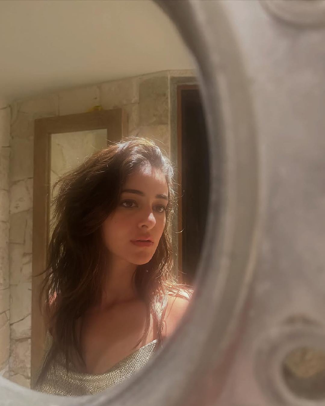 Dressed in a chic outfit, Ananya captured a quirky mirror selfie.
