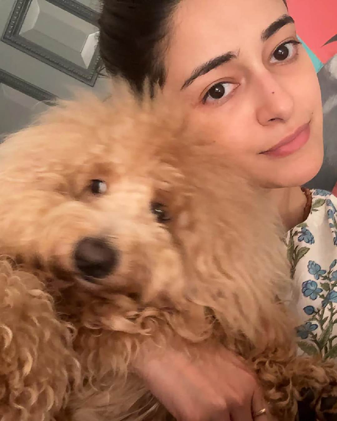 Ananya sported a no-makeup look as she struck a pose with her pet dog Riot, who often appears in her selfies.