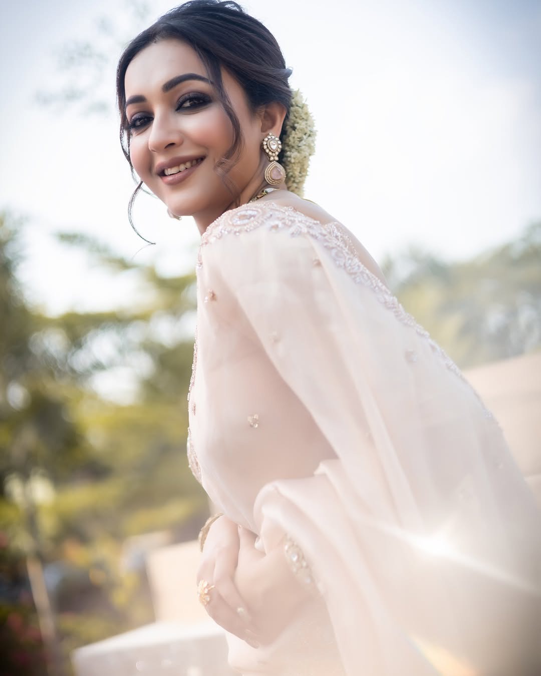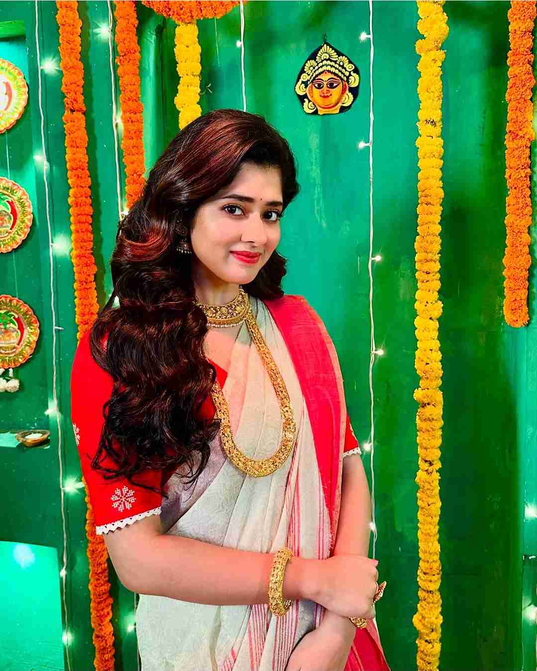 Ditipriya Roy turned heads in a classic white-and-red sari paired with golden jewellery. The actress will be next seen in Zee Bangla serial Chirodini Tumi Je Amar.