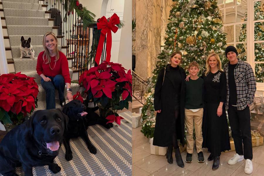 Reese Witherspoon embraced the festive season in style, twinning in black with her daughter Ava Elizabeth Phillippe and son Deacon Reese Phillippe. At home, she swapped her chic black outfit for a cosy red sweater and denim jeans, adding a perfect holiday touch to her look. Reese also spent quality time with her pet dogs and enjoyed sipping wine with her family, making the celebrations even more special.