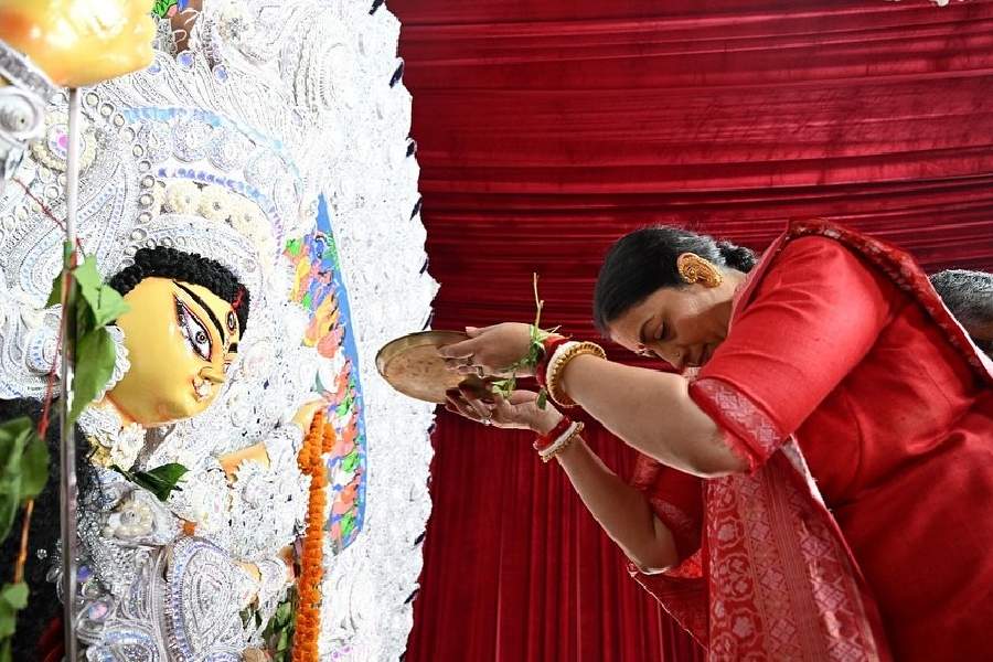 Smriti Irani bowed before Maa Durga’s idol to seek blessings on Vijaya Dashami.
