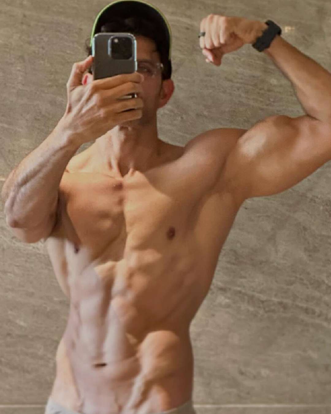 The War 2 actor shared a mirror selfie flaunting his ribbed body.