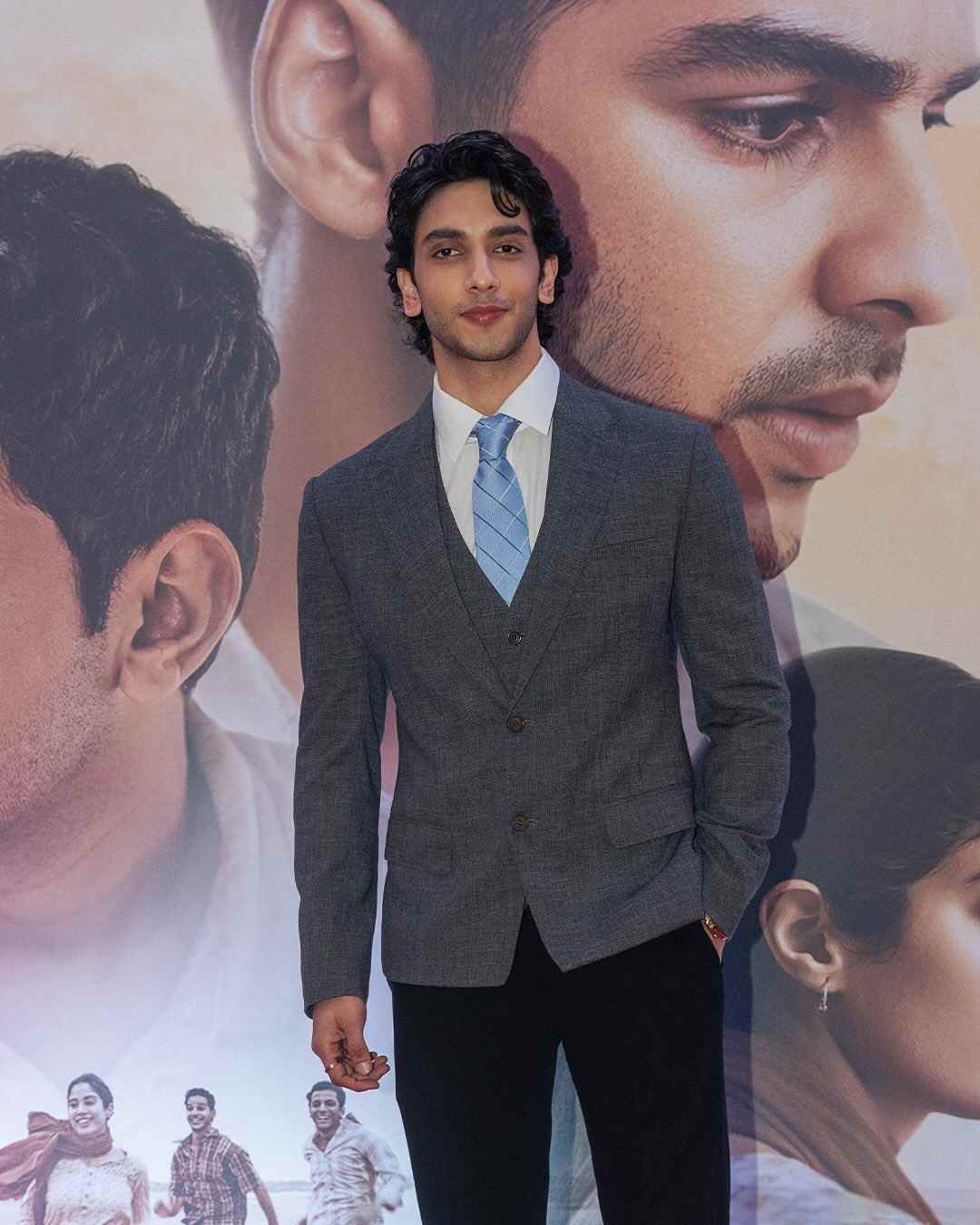 Jigra actor Vedang Raina wore a stylish grey suit with a light blue tie.