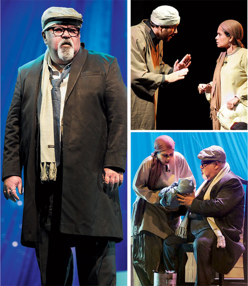 Saurabh Shukla in Barff, a play presented by Centre Stage Creations in association with t2, at GD Birla Sabhagar on July 22. Written and directed by Shukla, the play told the story of a doctor (played by Shukla) who ended up one snowy night in a deserted village in Kashmir, to treat the ailing child of the only residents left in the village (top right) — taxi driver Ghulam Rasool (Sunil Palwal) and his wife Nafisa (Sadiya Siddiqui).