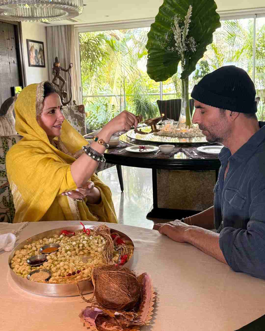 Akshay Kumar posted a picture of his sister Alka Bhatia performing Raksha Bandhan rituals.