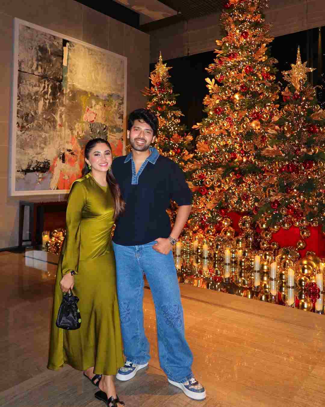 Bollywood playback singer Armaan Malik celebrated the festival of frost and cake with his Aashna Shroff, as the couple posed in front of a spangled tree.
