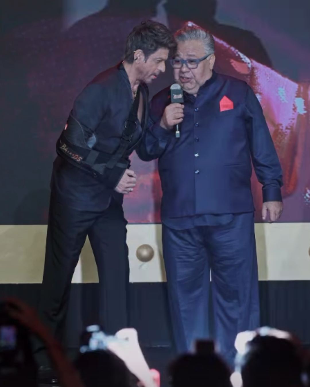 Actor Manoj Pahwa, who plays Aasman Singh’s father in the show, engaged in a lighthearted banter with Shah Rukh on stage.