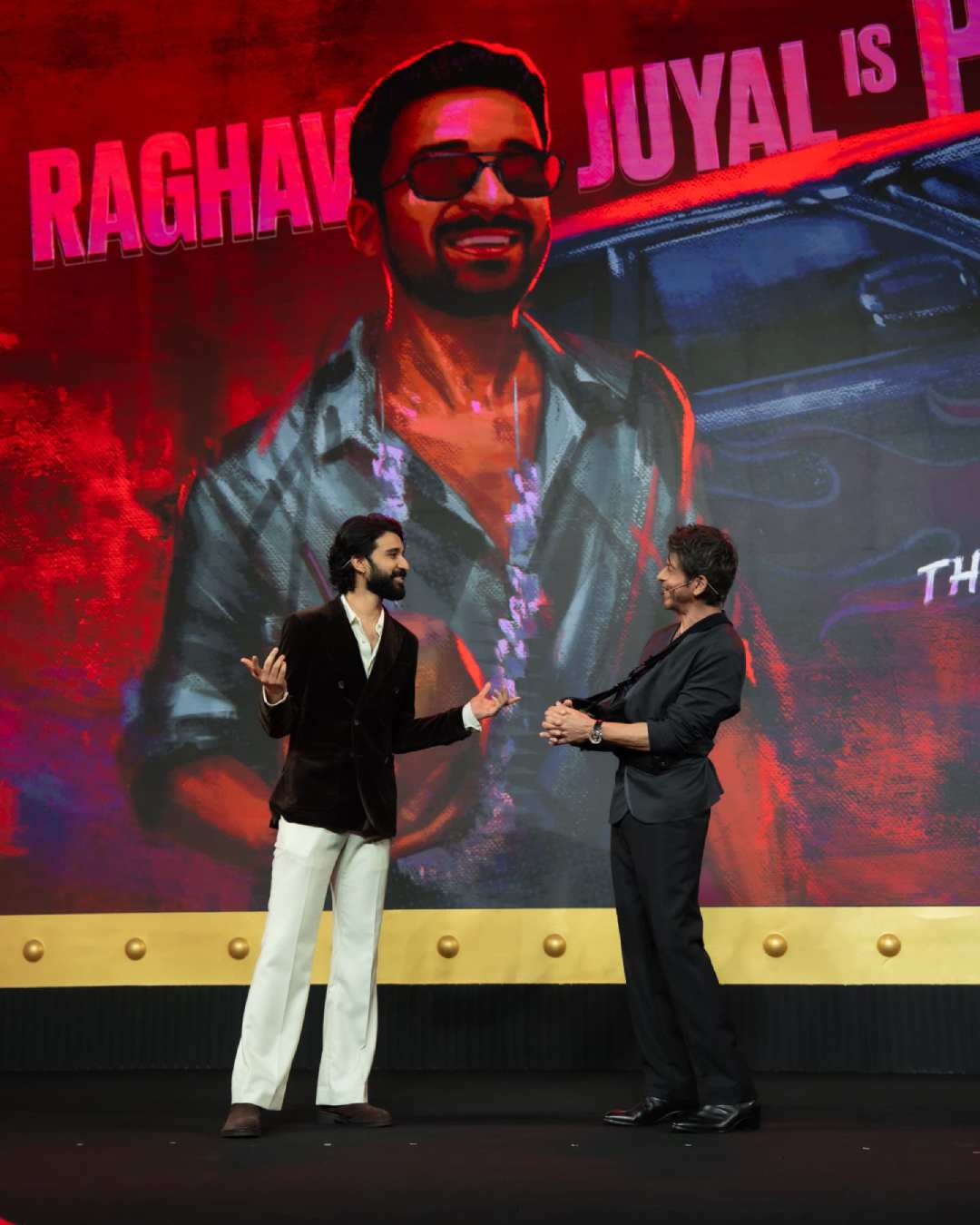 Lakshya is set to play the protagonist Aasman Singh in the Netflix series. He mimicked Shah Rukh’s signature arm-stretch pose at the event.