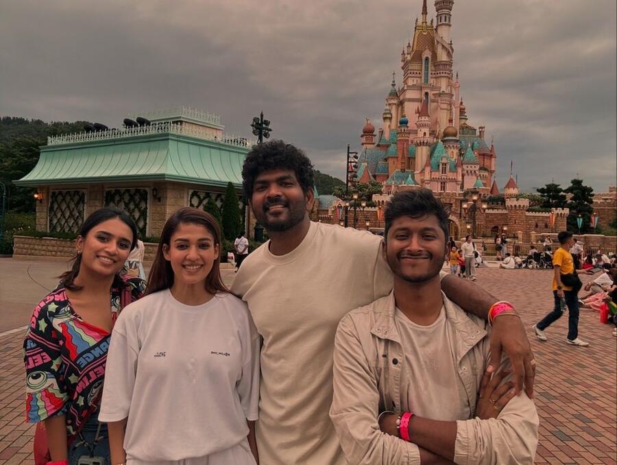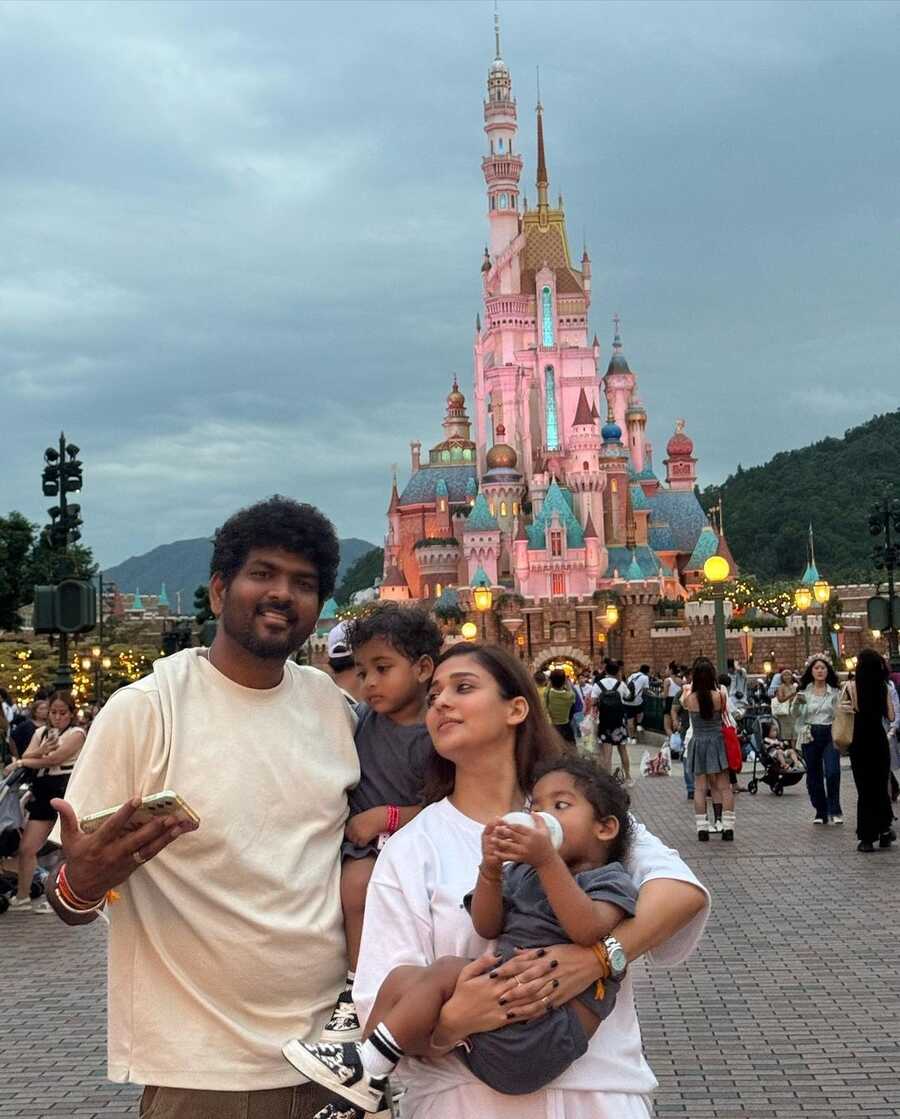 Actress Nayanthara and her husband Vignesh Sivan recently enjoyed a day out with their kids at Disneyland in Hong Kong. Take a look.
