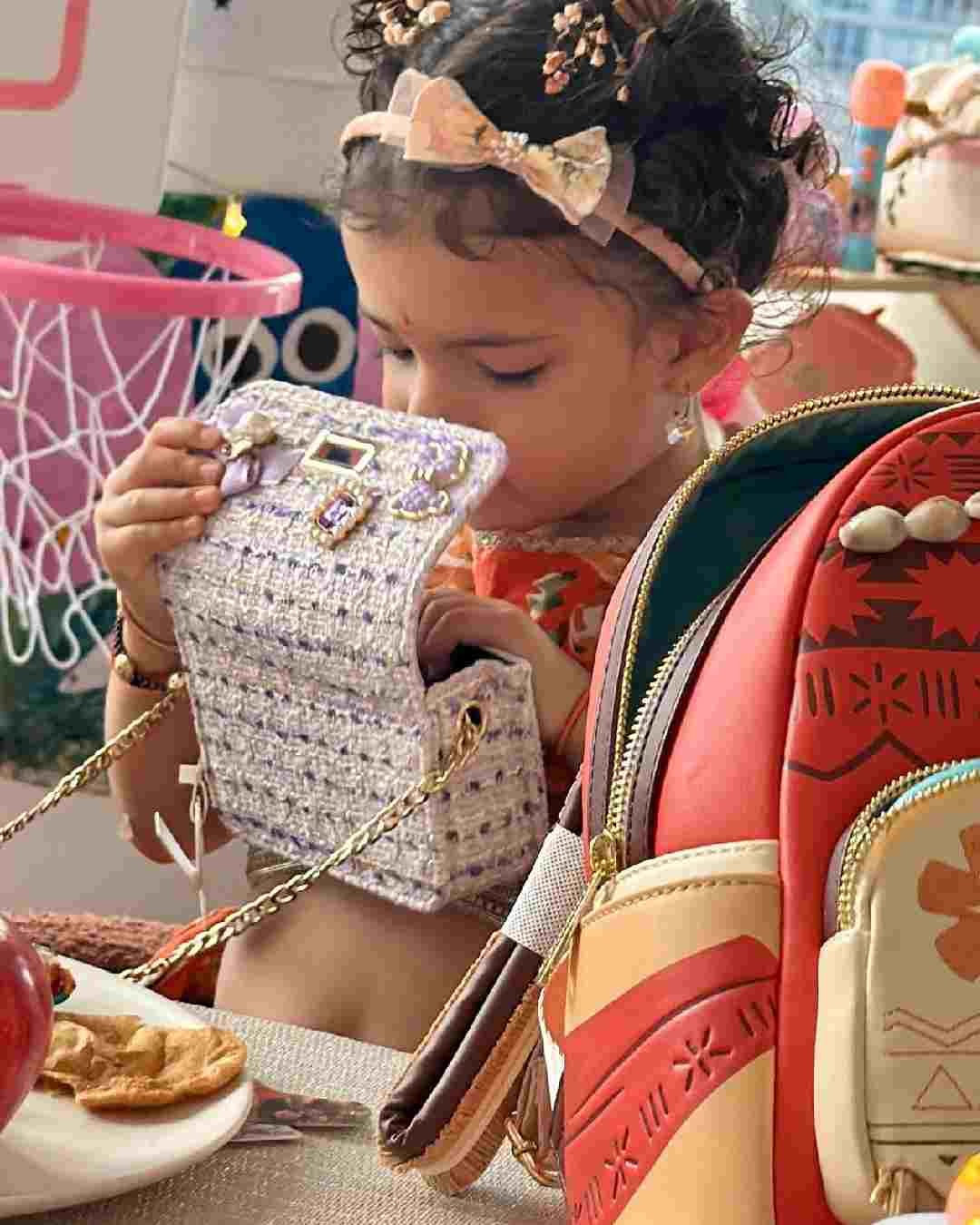 The couple posed with their three-year old daughter Malti and one of her friends.