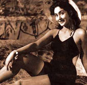It took another 20 years for a mainstream Indian actress to break the bra/ bikini/ swimsuit barrier. Glowing in the aftermath of Independence, with Bombay emerging as the money master of the country, Nutan, with her sweet and coy smile, dared to wear a swimsuit in 1958 in Dilli Ka Thug. It’s another matter that the swimsuit was as modest as a swimsuit has ever been in its history; in effect the swimming costume hardly revealed any skin below her shoulders, all it did was to emphasise her slender curves by being a second skin in black against her fair complexion. Vyjayanthimala soon followed Nutan in donning a swimsuit for Sangam (1964), but that the camera did everything it could to hide rather than reveal.