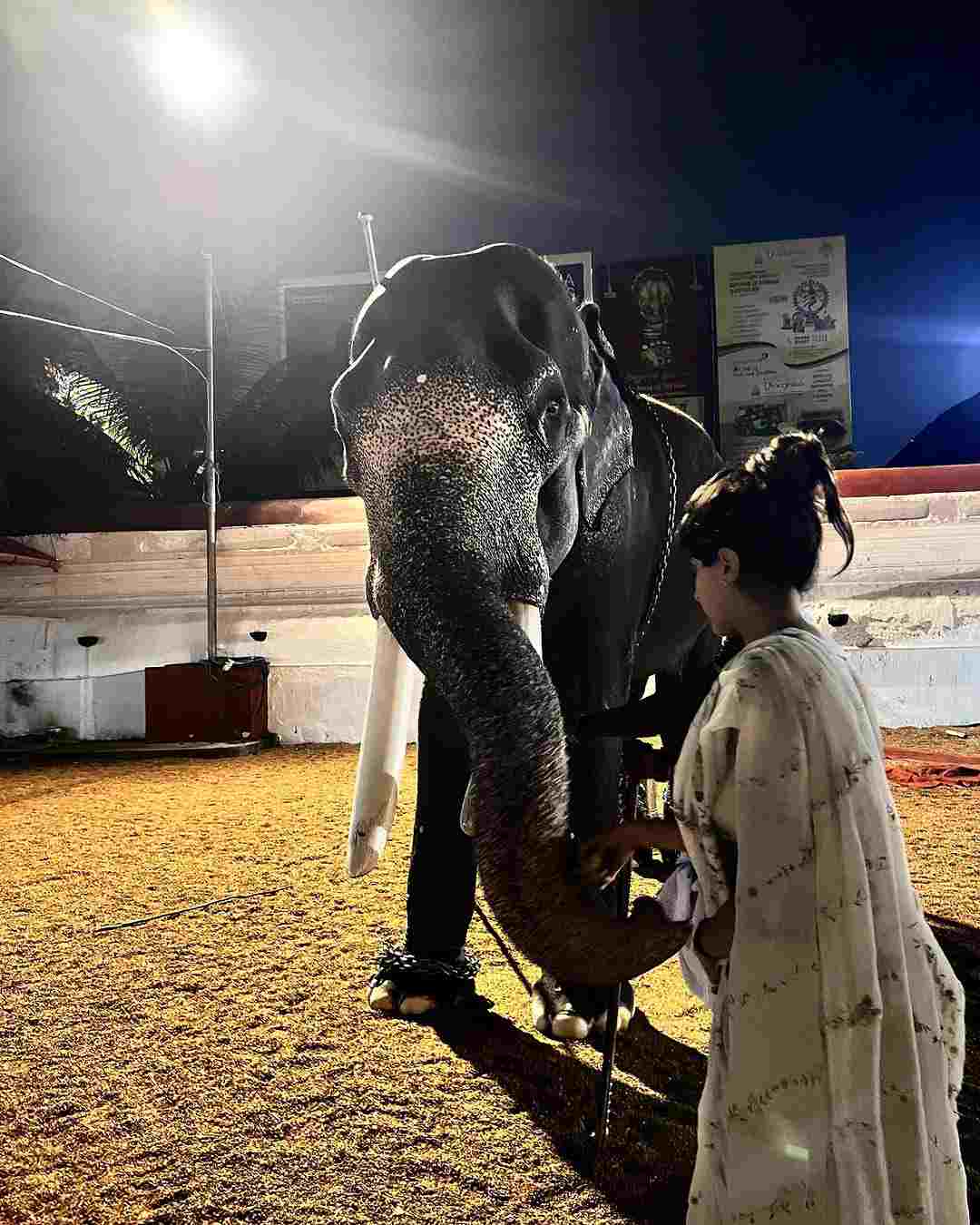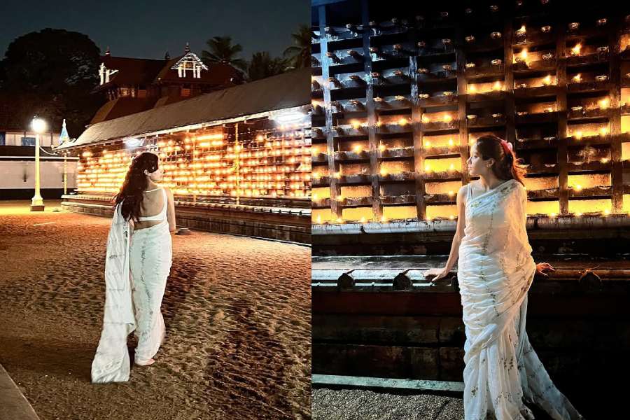 Janhvi also visited the Ernakulam Shiva Temple, which was adorned with diyas.