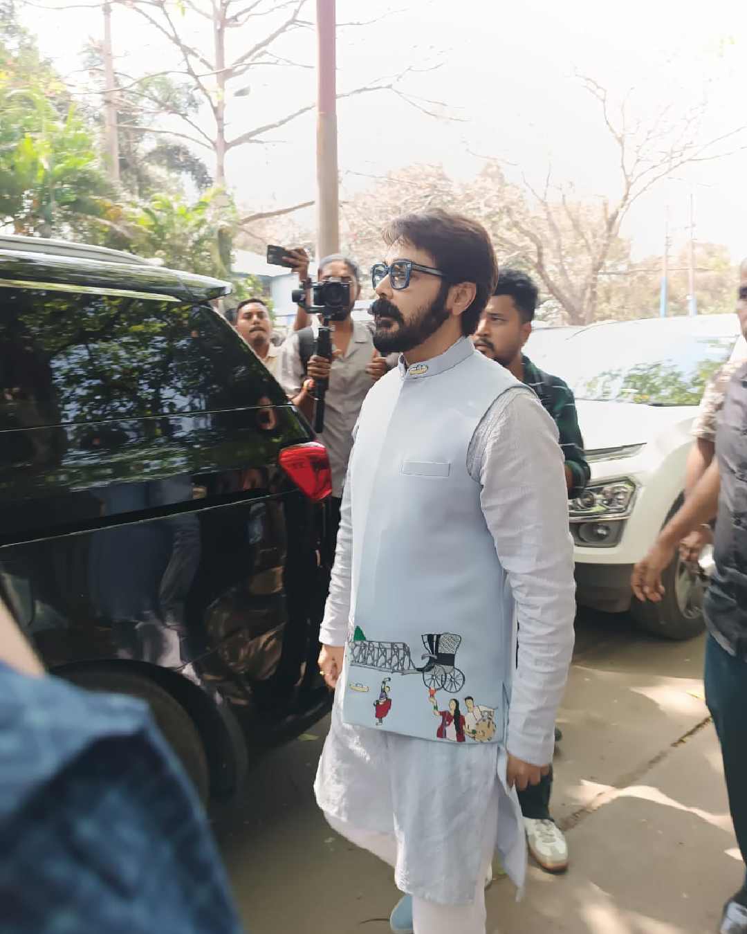 Prosenjit, who is set to essay the role of a politician in the upcoming series, looked dapper in chic glasses and a Kolkata-themed jacket. A white kurta, matching trousers and a well-groomed beard rounded off his look.