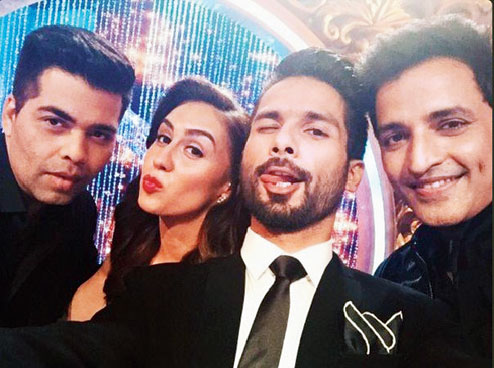 That’s Shahid Kapoor’s selfie — Karan Johar, dancer Lauren Gottlieb and choreographer Ganesh Acharya for company — from his first day on the sets of Jhalak Dikhhla Jaa. Shahid, who makes his TV debut as judge on the celebrity dance show aired on Colors, will reportedly shoot a few episodes before flying off to Delhi to get married to Mira Rajput on July 7. The wedding, to be held in a plush five-star address in Gurgaon, will be followed by a big bash in Mumbai on July 12 for Shahid’s Bollywood pals. Not much is known about the 34-year-old Haider star’s hush-hush wedding, though reports suggest that his wedding attire will be designed by good friend Kunal Rawal while Calcutta’s very own Anamika Khanna is in charge of Mira’s trousseau.