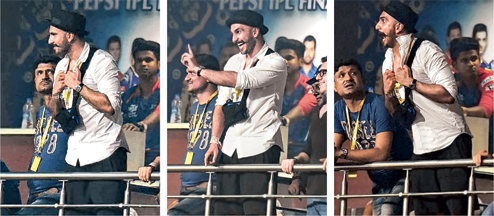 I tried to pretend I didn’t hear that as Ranveer sent out a pelvic thrust to the 66,000-strong crowd at Eden Gardens with the beats of Tu ne maari entriyaan from Gunday ringing out loud. The Dil Dhadakne Do dude was most certainly enjoying the attention, little knowing that among the many dils he set dhadko-ing, one belonged to Dhoni’s mother-in-law.