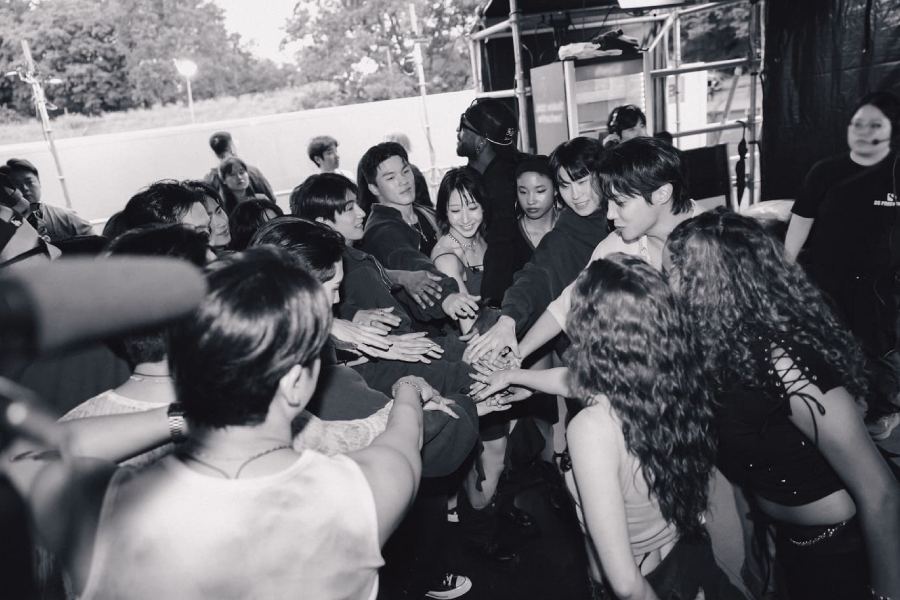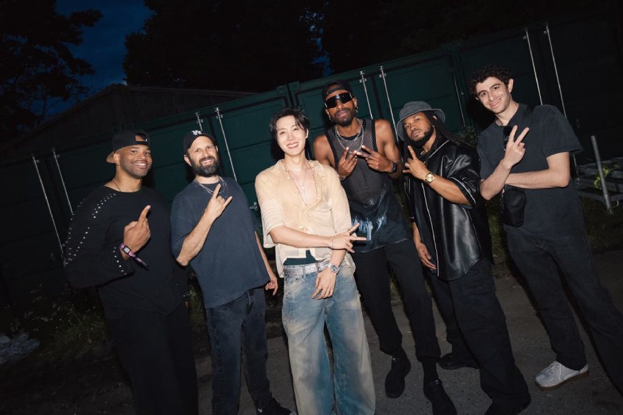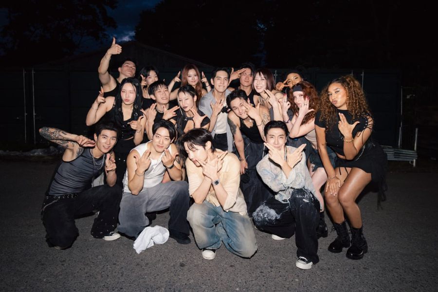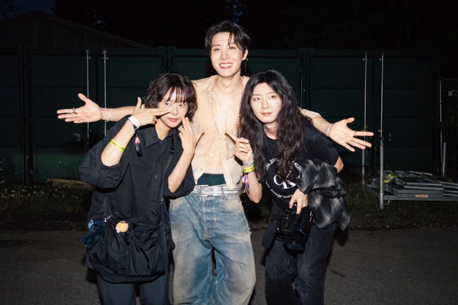 After his performances, J-Hope posed for the lens with the background dancers backstage.