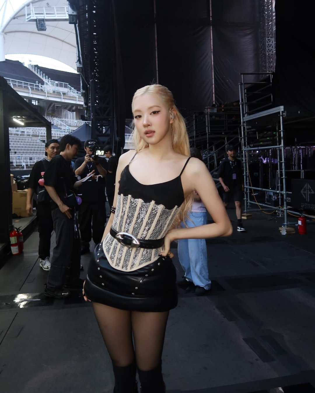 Rose looked stunning in a white lacy corset worn over a black tank top. The singer recently achieved a remarkable feat, becoming the first female solo artist in Seoul Music Awards history to earn a Bonsang for her latest album Rosie.