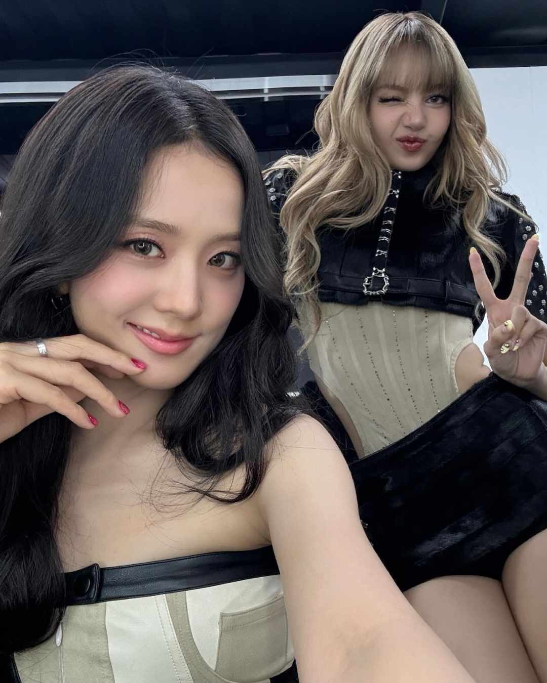 Jisoo posted a selfie with bandmate Lisa from the makeup room.