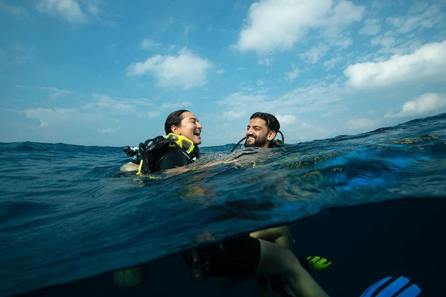 After returning from a solo trip to Egypt, Sonakshi Sinha went scuba diving with friend Zaheer Iqbal during their recent vacation in Andaman and Nicobar Islands.