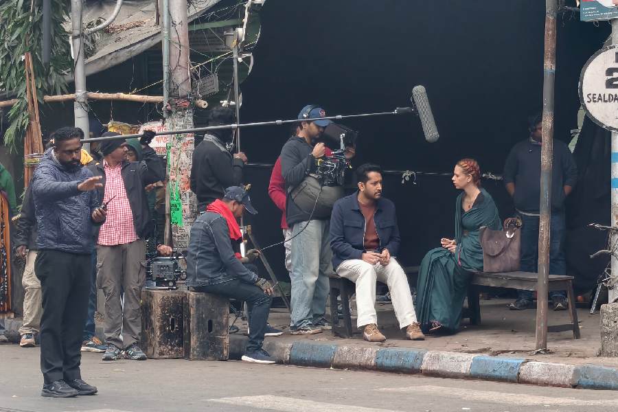 Kolkata’s College Street turned into a film set on Sunday as actress Kalki Koechlin and actor Parambrata Chattopadhyay filmed for an upcoming series at the iconic spot.