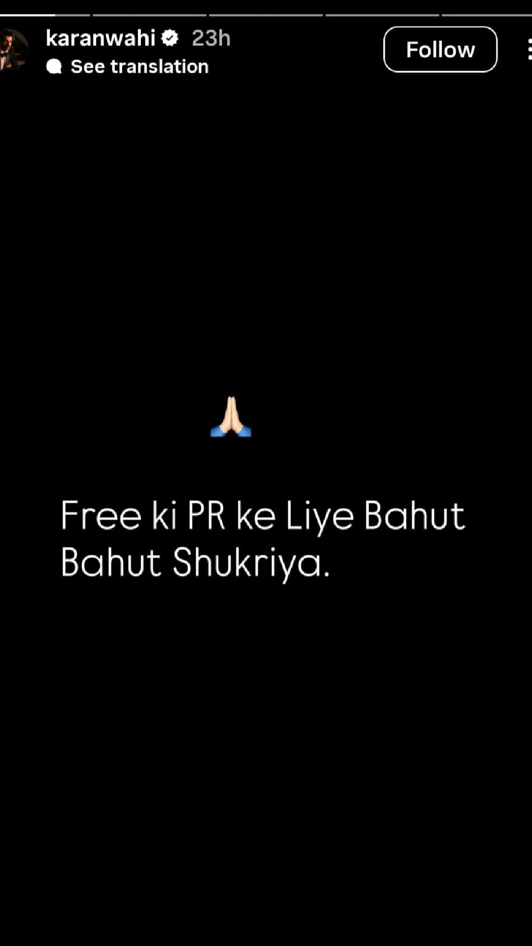 Wahi also took to Instagram to react to the online chatter. “Free ki PR ke liye Shukriya,” he wrote alongside a prayer hand emoji.