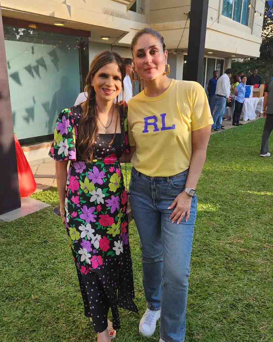 Kareena, clad in a yellow t-shirt and blue jeans, posed for a picture with sister-in-law Saba Pataudi, who chose a black floral-printed long dress for the occasion.