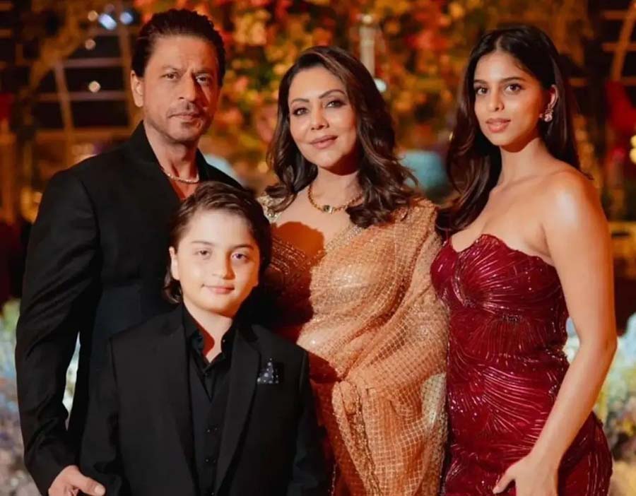 While Shah Rukh Khan and his younger son Abram sported black tuxedos, Gauri Khan and Suhana shimmered in metallics. Gauri draped a golden sari, while Suhana posed in a red metallic column gown.
