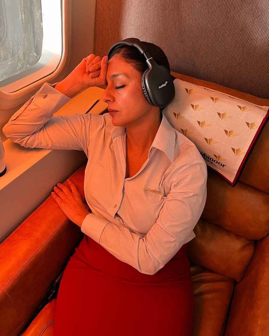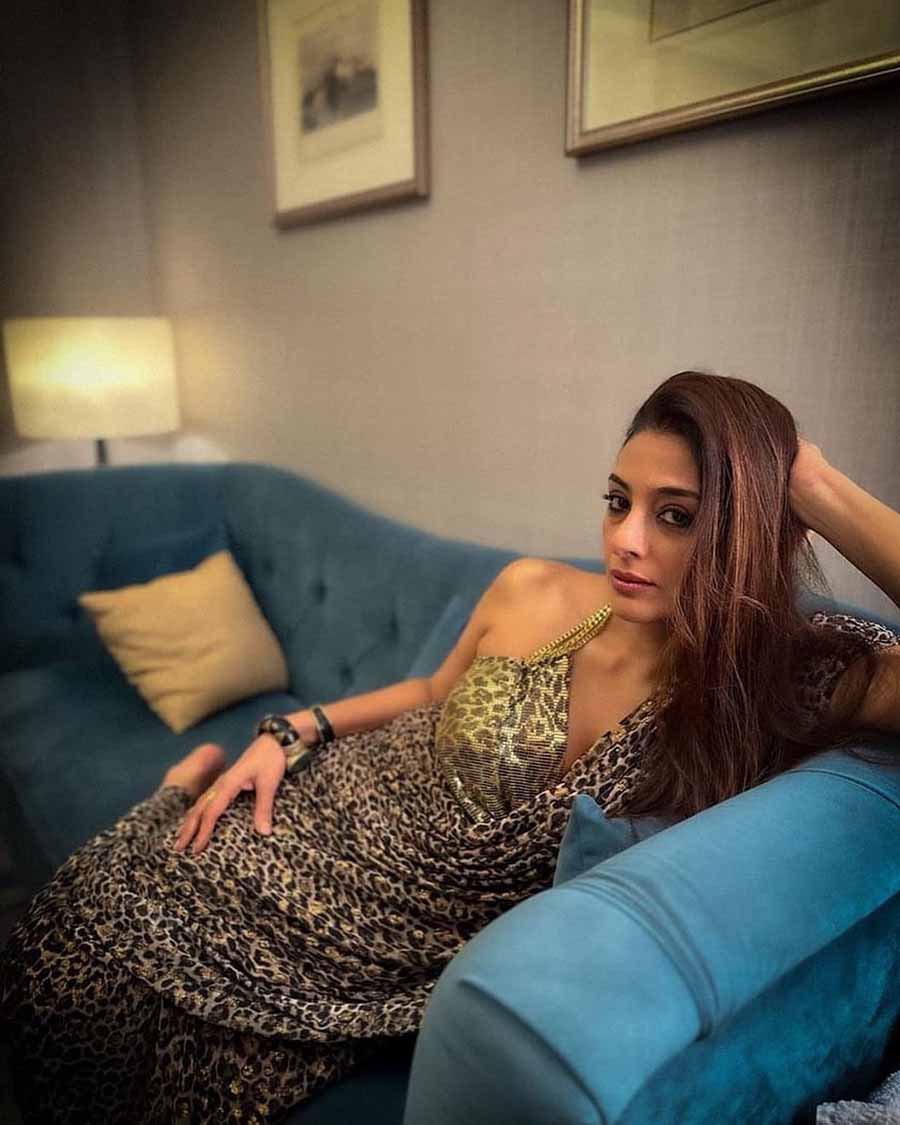 Tabu posed for the lens in a leopard-print sari on a blue couch during promotions for the film. Crew also stars Diljit Dosanjh, Kapil Sharma and Saswata Chatterjee in pivotal roles.