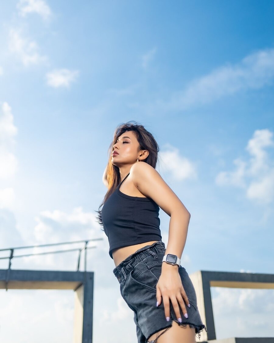 Mimi Chakraborty kept it casual yet chic in a black ribbed crop top and denim shorts. “Just sunset things,” wrote Mimi alongside the pictures on Instagram.