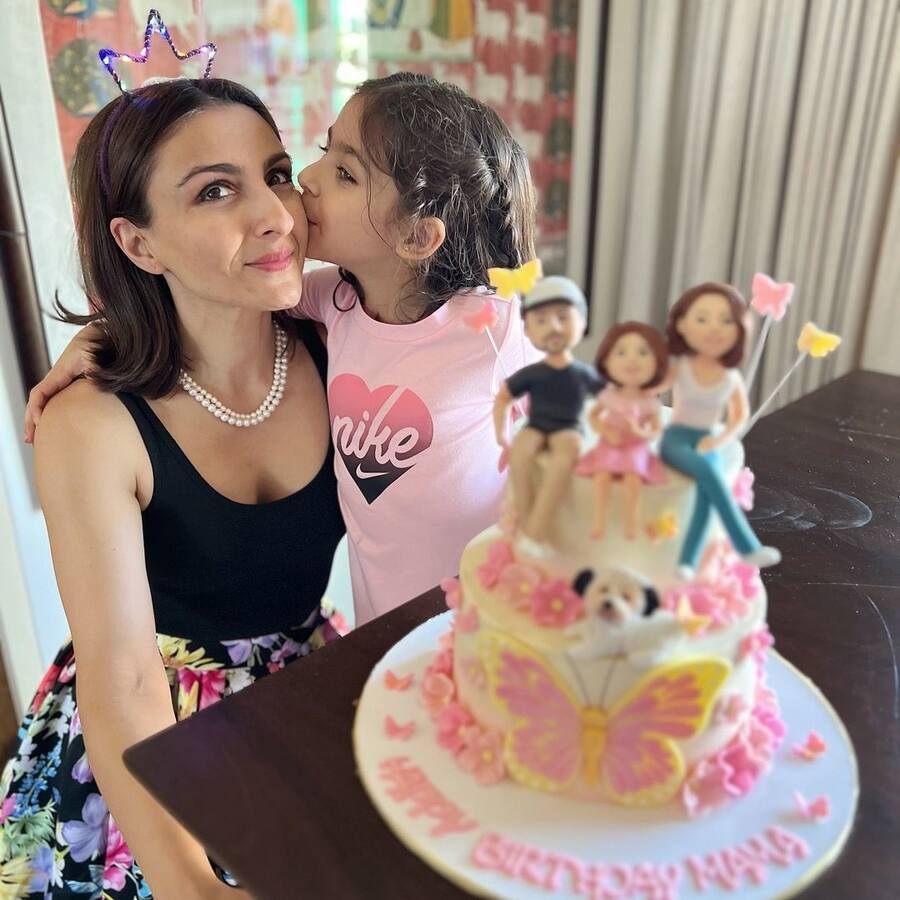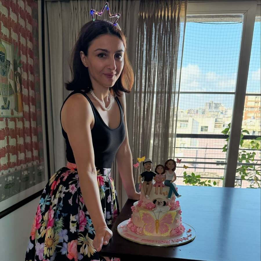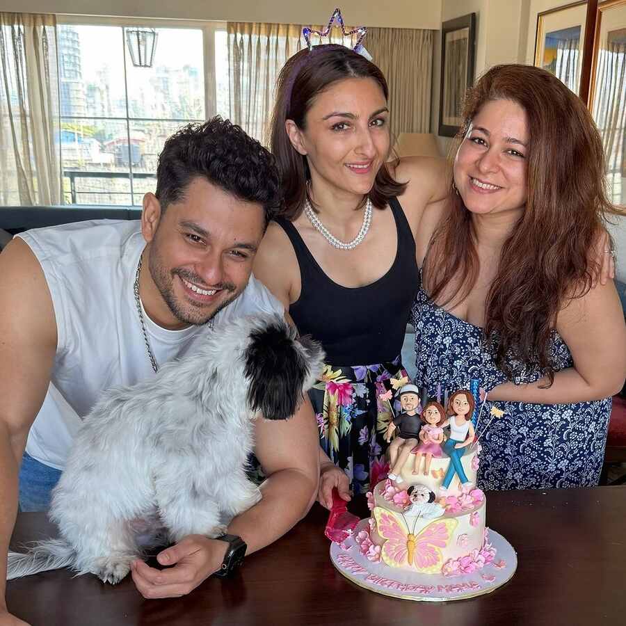 Kunal’s younger sister, Karishma Kemmu, was also present at the celebration. She posed with Soha’s birthday cake, which was adorned with figurines representing Soha’s family – Soha, Kunal, Inaaya, and their pet dog.