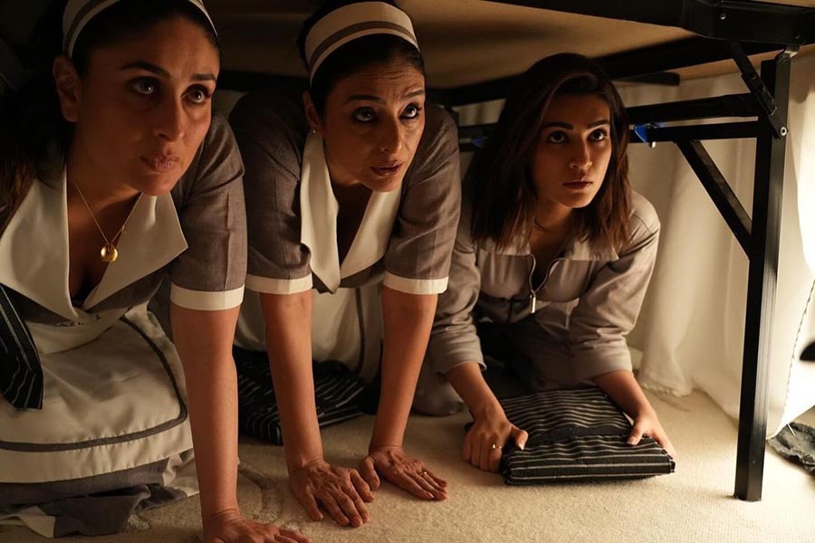 The movie follows the story of three air hostesses — Tabu, Kareena, and Kriti — who attempt to steal smuggled gold biscuits amidst their airline Kohinoor’s financial troubles. The film also stars Diljit Dosanjh, Kapil Sharma and Rajesh Sharma.