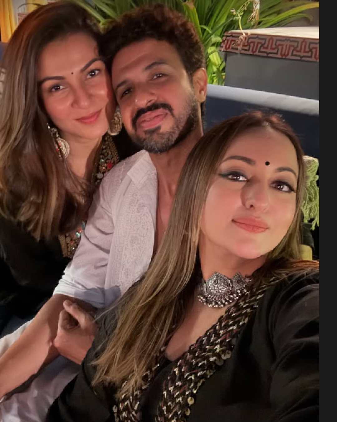 Actress Sonakshi Sinha, who tied the knot with actor Zaheer Iqbal in June last year, celebrated her first Eid after marriage with sister-in-law Sanam Ratansi. Sanam, who is a celebrity stylist, twinned with Sonakshi in a black kurta. Sonakshi opted for sleek, straight hair, a vintage choker, and a black bindi to round off her look.