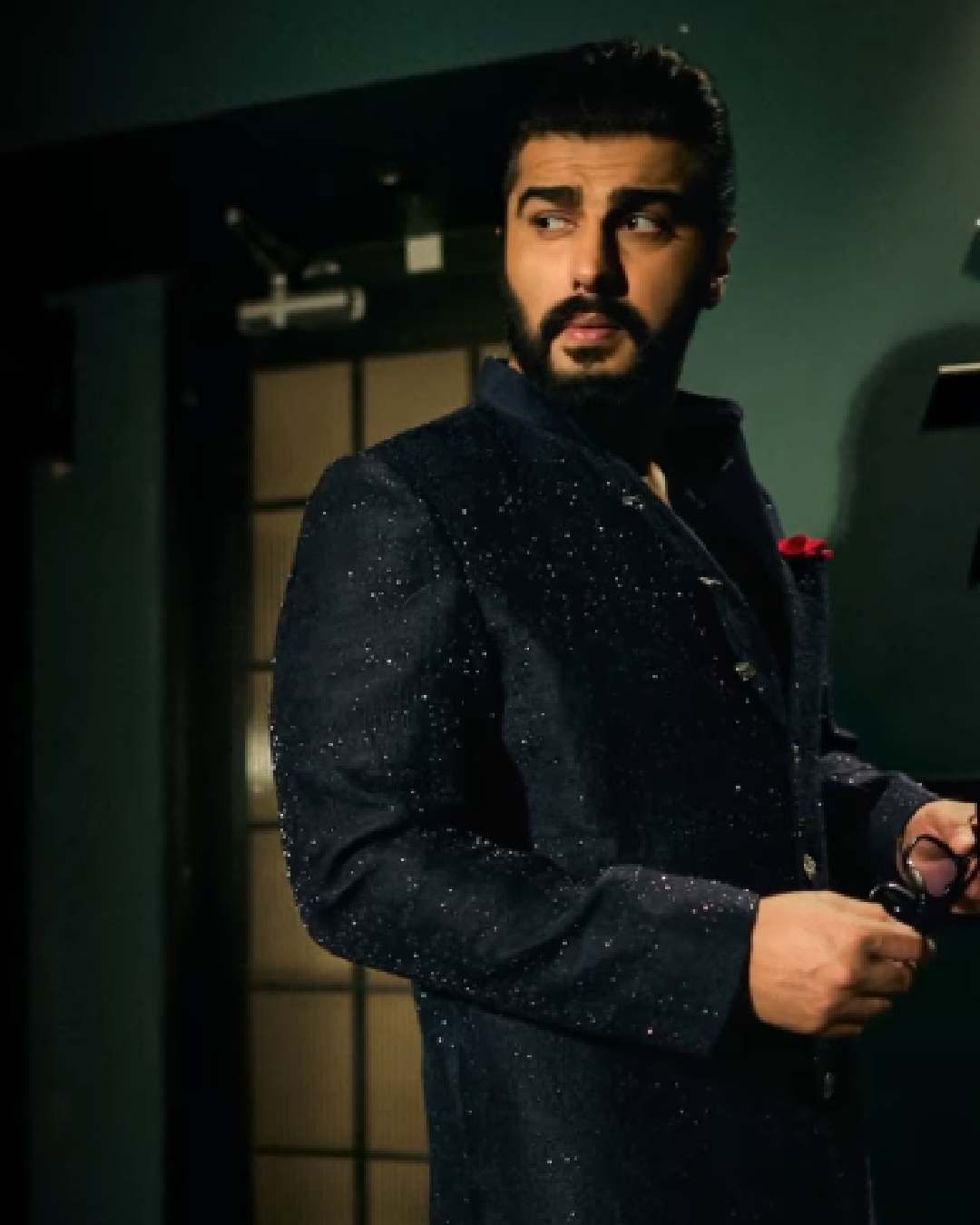 Actor Arjun Kapoor embraced the festive spirit in a sequined black kurta. A well-groomed beard complemented his look.