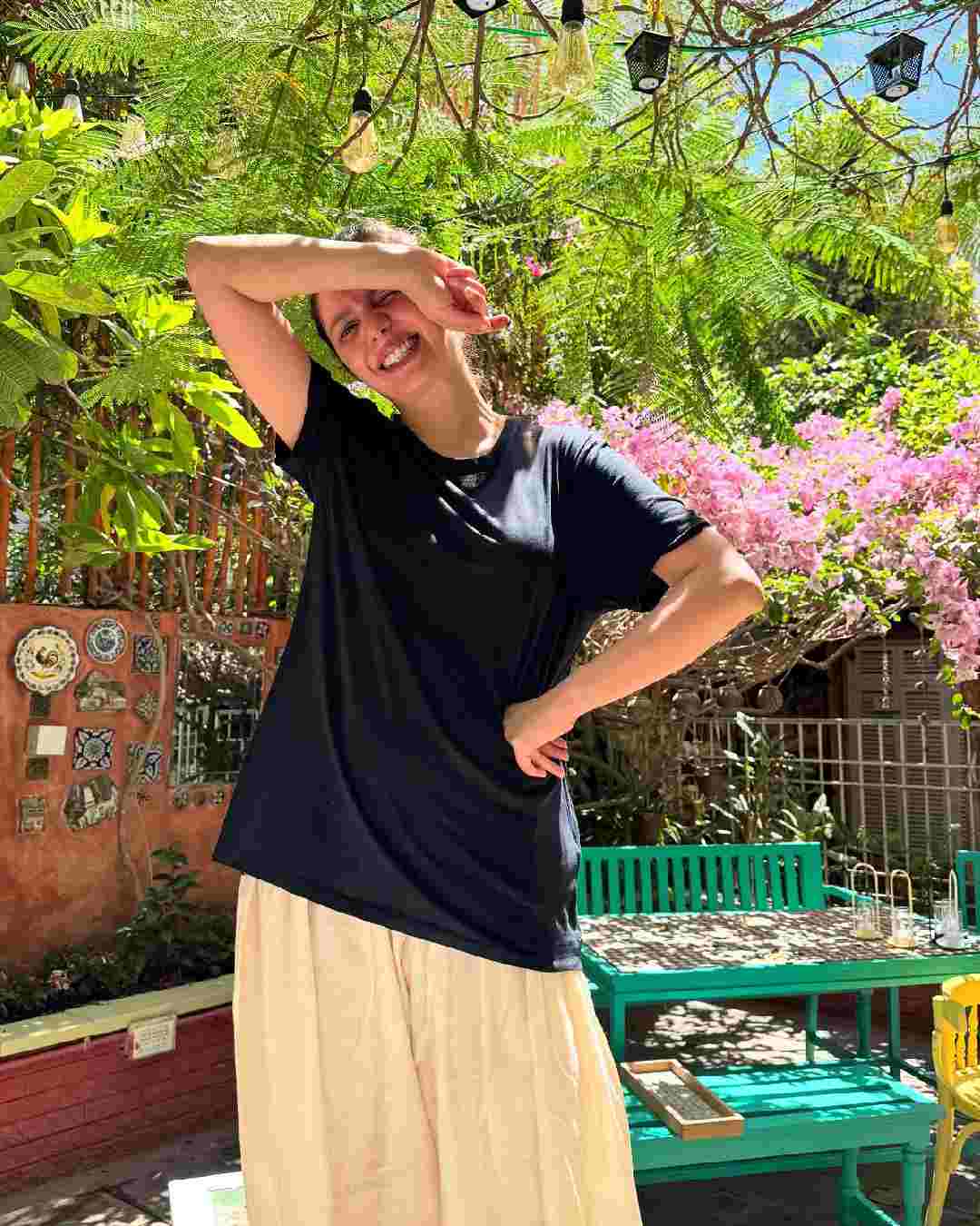 Actress Mahira Khan, who starred opposite Shah Rukh Khan in Raees (2017), spent a laid-back day at home, dressed in a casual black T-shirt and white trousers.