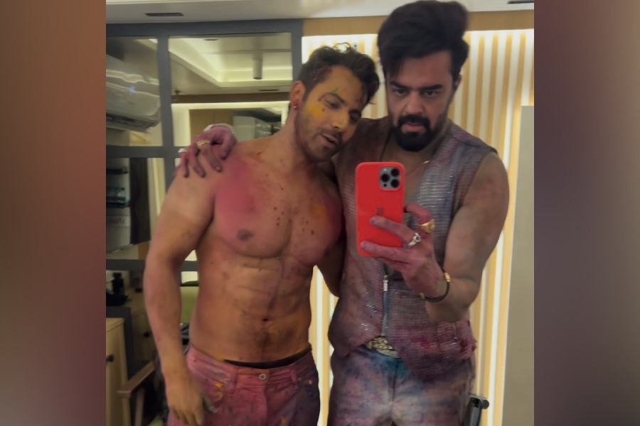 Varun Dhawan, who is currently shooting his upcoming romantic comedy Sunny Sanskari Ki Tulsi Kumari, wished his fans on Holi by sharing a fun behind-the-scenes video from the film’s upcoming Holi song. The video, shot in the makeup room, also features his co-actor Maniesh Paul.