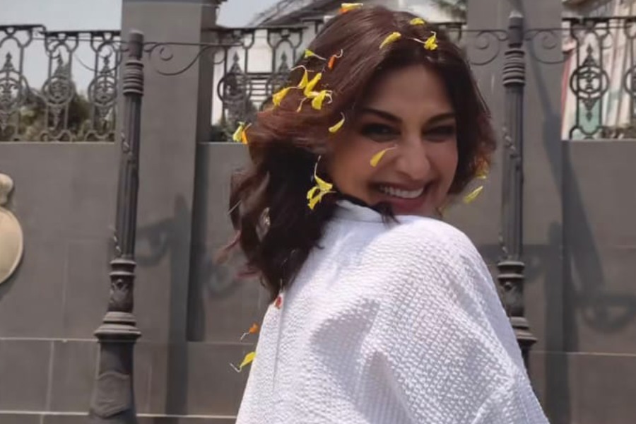 Actress Sonali Bendre embraced a floral Holi this year. In a video, she is seen joyfully twirling in her white kurta while showering herself with flower petals.