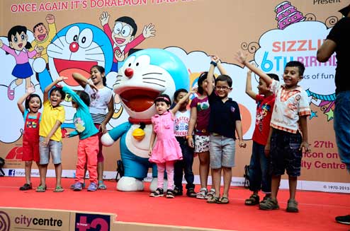 (Right) For Archisha Sen, a regular visit to City Centre New Town turned out to be a special one. “I come here with my parents almost every weekend but this time I was in for a surprise. Doraemon is so intelligent and helpful!” said Archisha, a student of Class II at Salt Lake English Medium School, as she tried her hand(s) at bowling.