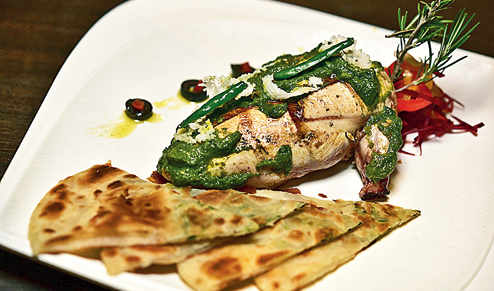 Items on the mains menu get the same treatment. Like the mutton gets a cappuccino sauce or the chicken comes with a green chilli-coconut pesto. In desserts, expect fusions like Ice cream Patishapta.