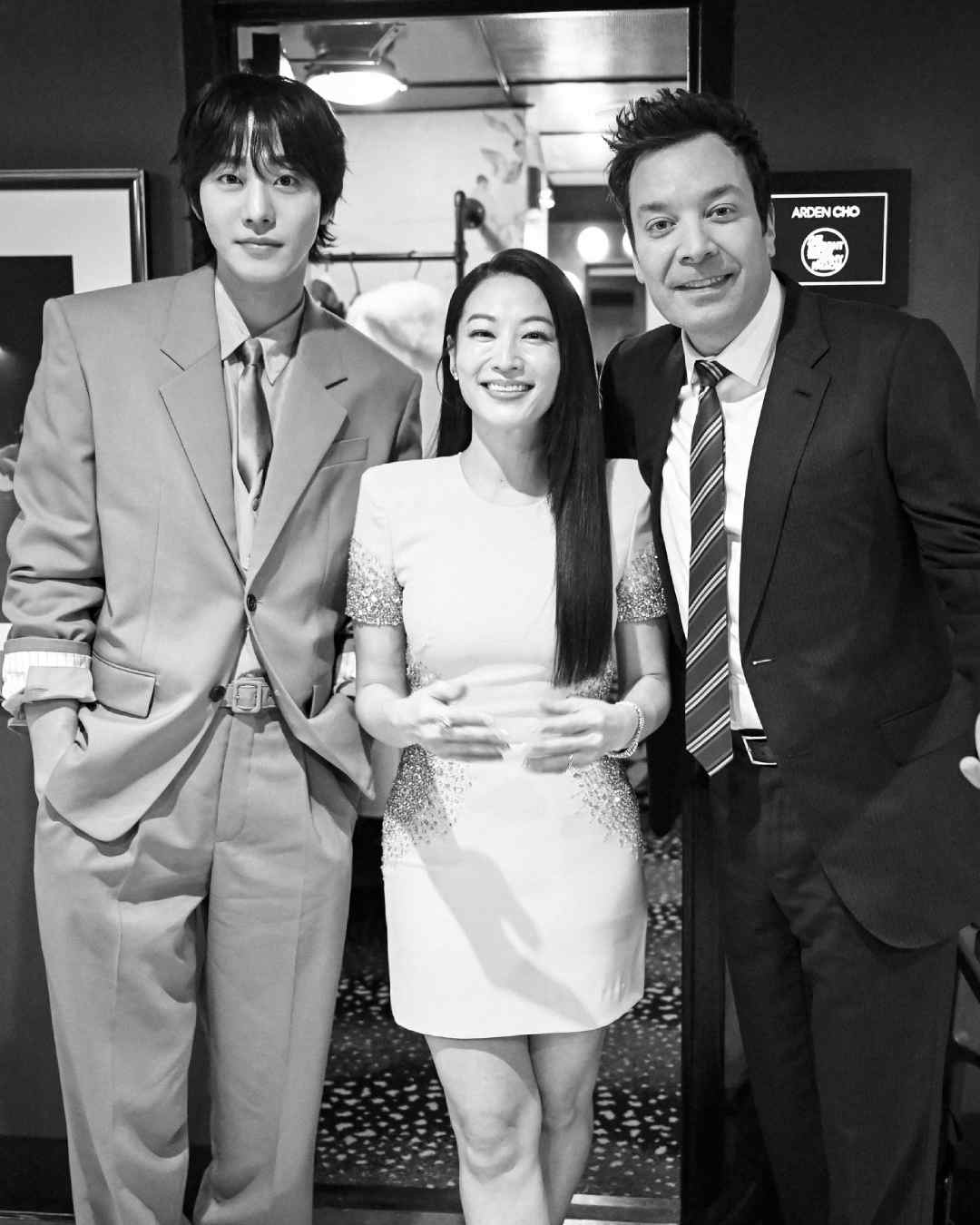 “@arden_cho (acting voice of Rumi) & @imhyoseop (acting voice of Jinu) make their Tonight Show debuts to talk KPop Demon Hunters tonight,” the official Instagram handle of the show wrote, sharing a set of pictures.