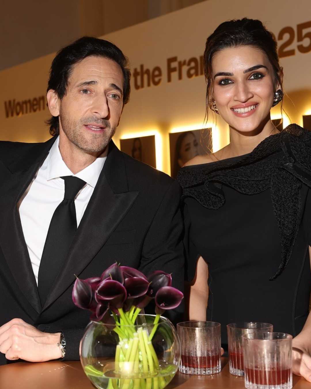 Photos of Kriti Sanon socialising with Hollywood stars surfaced on social media from the event, where she appeared to be taking pictures with Adrien Brody and Uma Thurman.