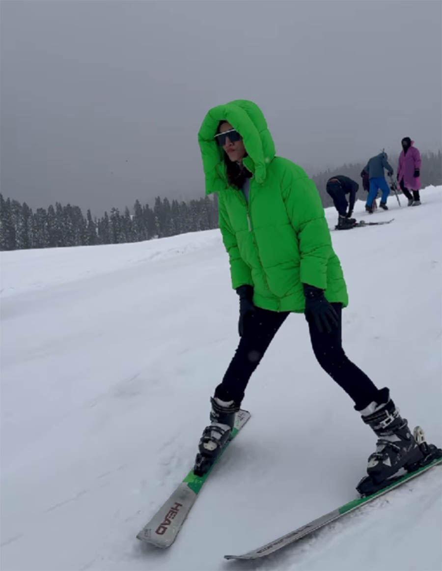 Actress Kriti Sanon has been enjoying a skiing holiday in snow-covered Kashmir after wrapping up the shoot of Kareena Kapoor and Tabu-starrer crime comedy Crew shoot wrap. Here’s a look at her winter frolics in the picturesque valley.