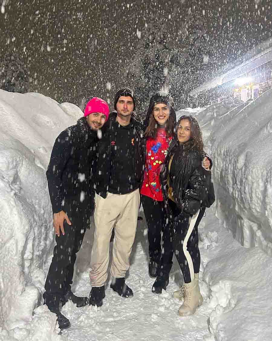 The actress, who recently shared screen space with Shahid Kapoor in Teri Baaton Mein Aisa Uljha Jiya, enjoyed light snowfall in the valley with her friends.