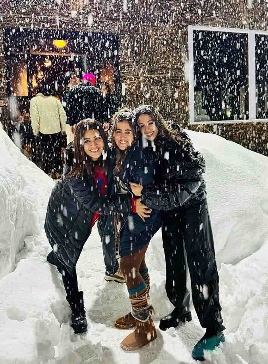 Kriti and her friends posed for a photo amid the white landscape of Kashmir as the entire valley is currently enveloped in snow.