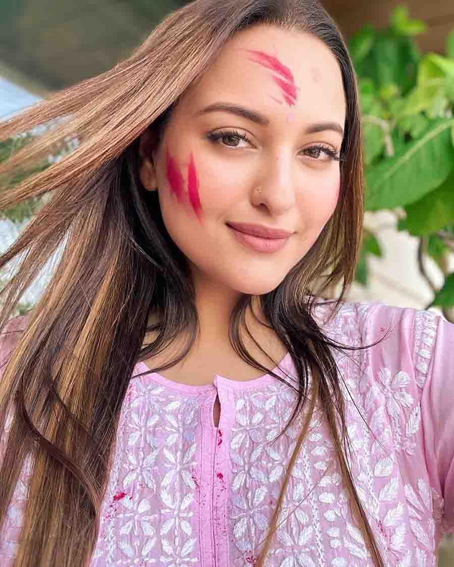 Sonakshi Sinha, who is set to star in Ali Abbas Zafar’s upcoming action thriller Bade Miyan Chote Miyan and Sanjay Leela Bhansali’s OTT debut Heeramandi: The Diamond Bazaar, clicked a selfie in a lavender chikankari kurta. The actress wore her hair down with red gulaal adding a dash of colour to her nude makeup.